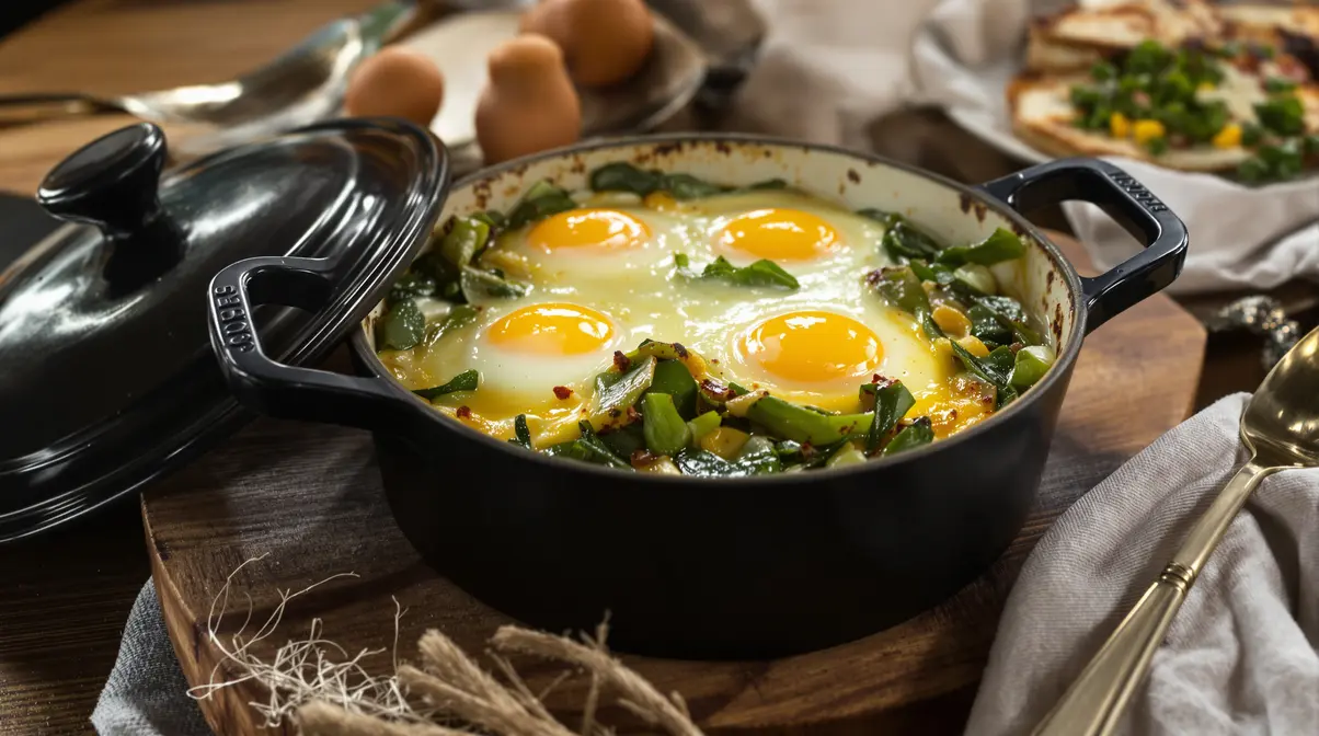 Vous rentrez tard, aucune envie d’allumer le four, mais tout de même besoin d’un vrai repas qui réconforte. Imaginez alors une petite casserole qui fume doucement, des épinards qui fondent dans le beurre, un parfum d’ail qui vous met l’eau à la bouche, et au centre… des œufs cocotte à la cuillère, ultra fondants, prêts en quelques minutes. Oui, sans four, juste avec une casserole et un couvercle.